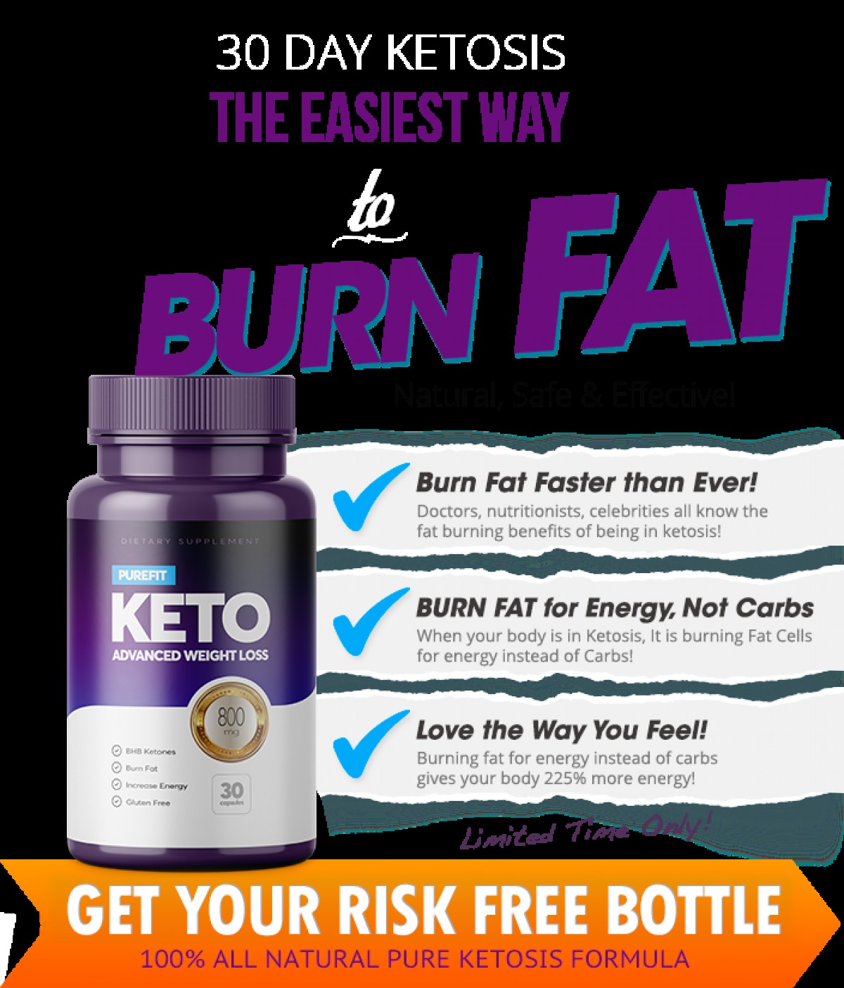 Claim your FREE bottle today - Purefit KETO with BHB allows you to lose up to 1lb of fat every day!